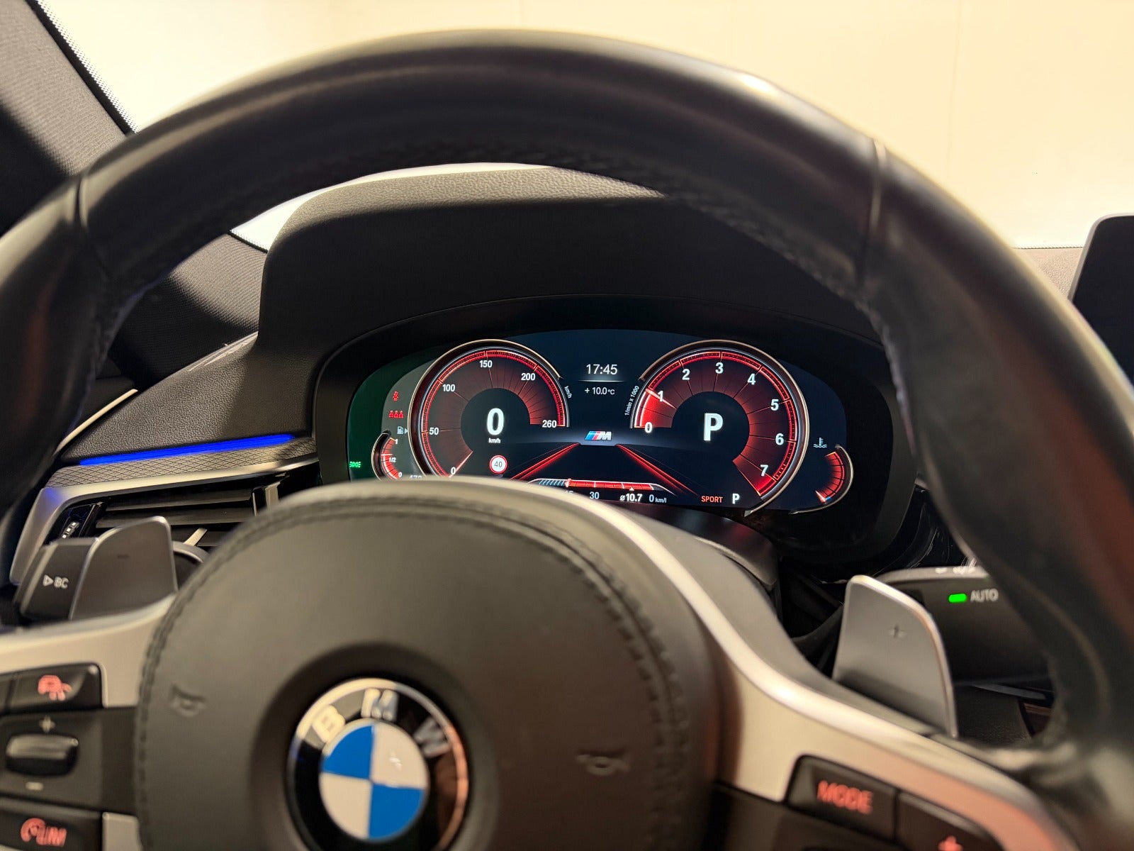 - M-sport læderkabine med blå sygninger.